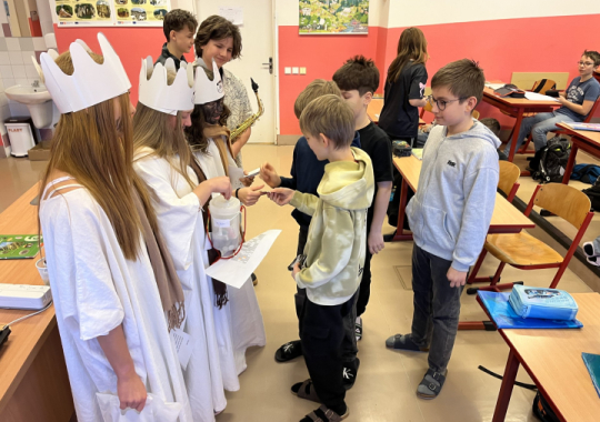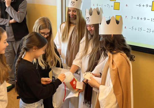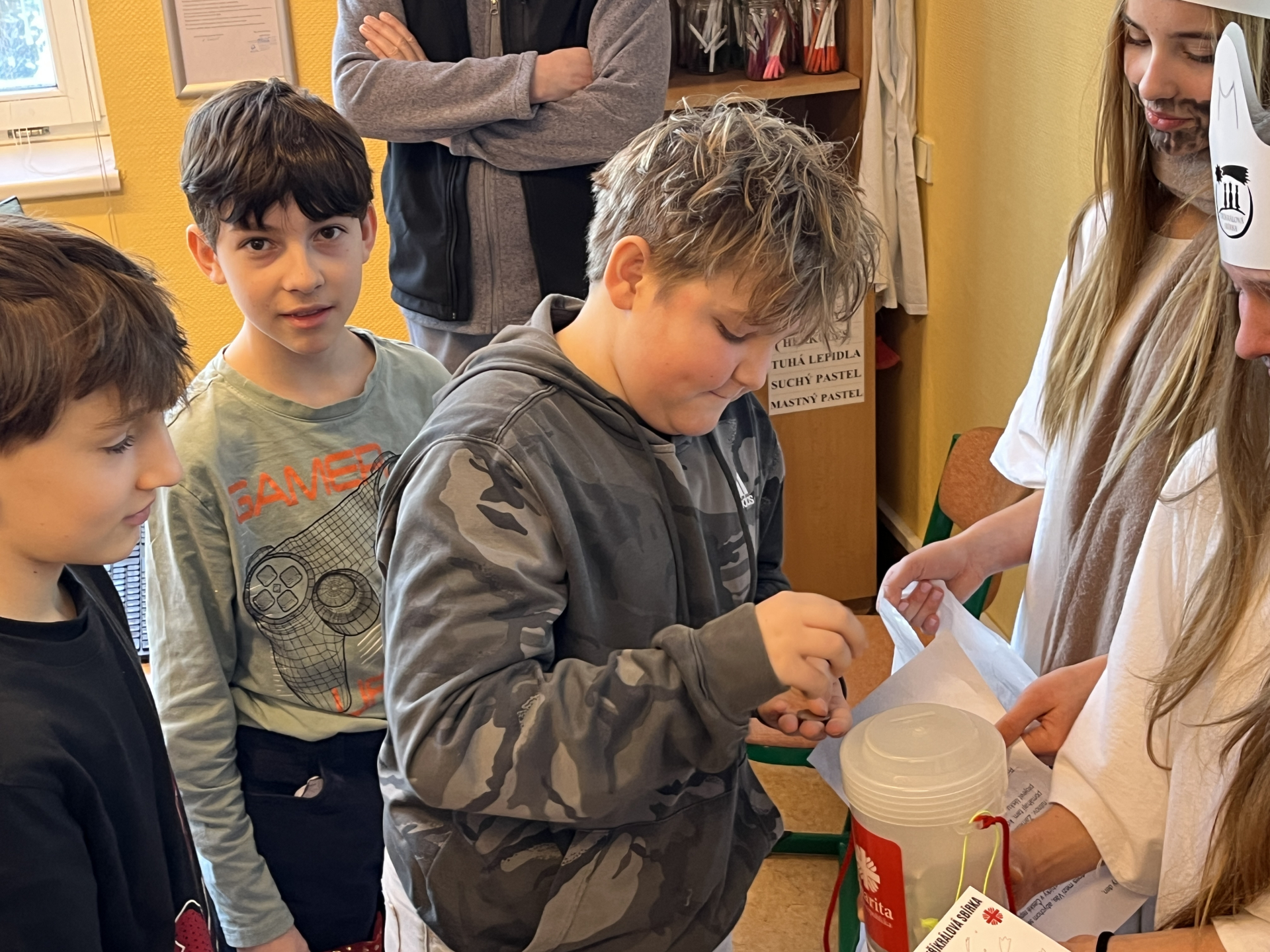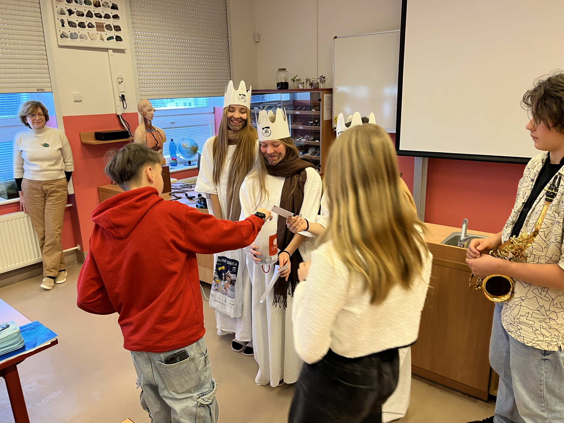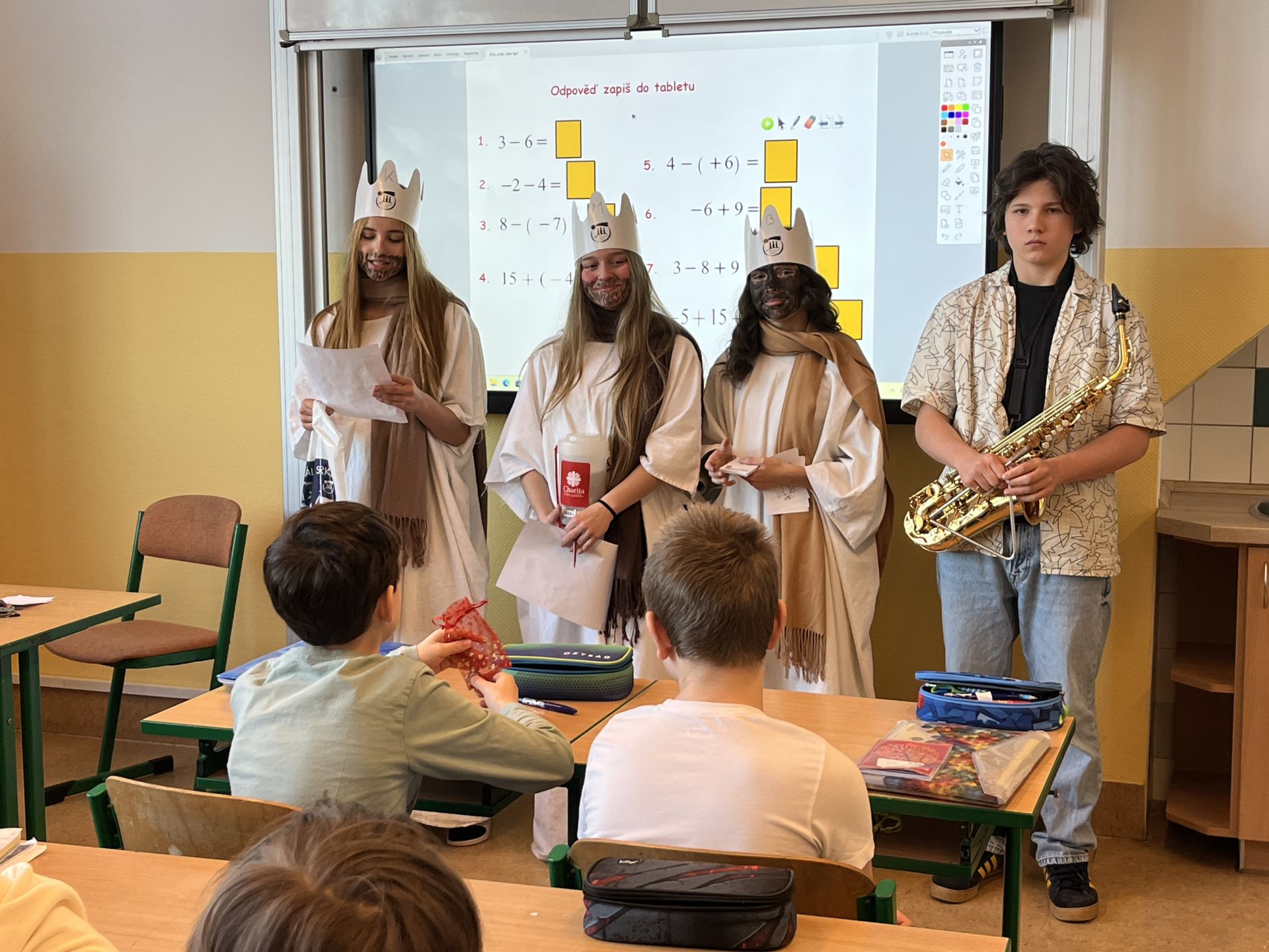 Tři králové prošli naší školou v úterý 6. ledna 2026. Do Tříkrálové pokladničky, která byla vystavena ve vestibulu školy, bylo možné přispívat do 14. ledna 2026, kdy sbírka oficiálně skončila.