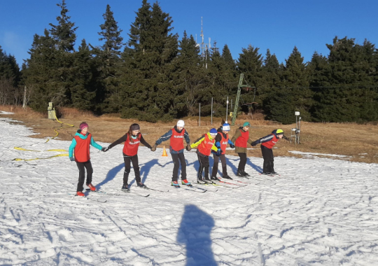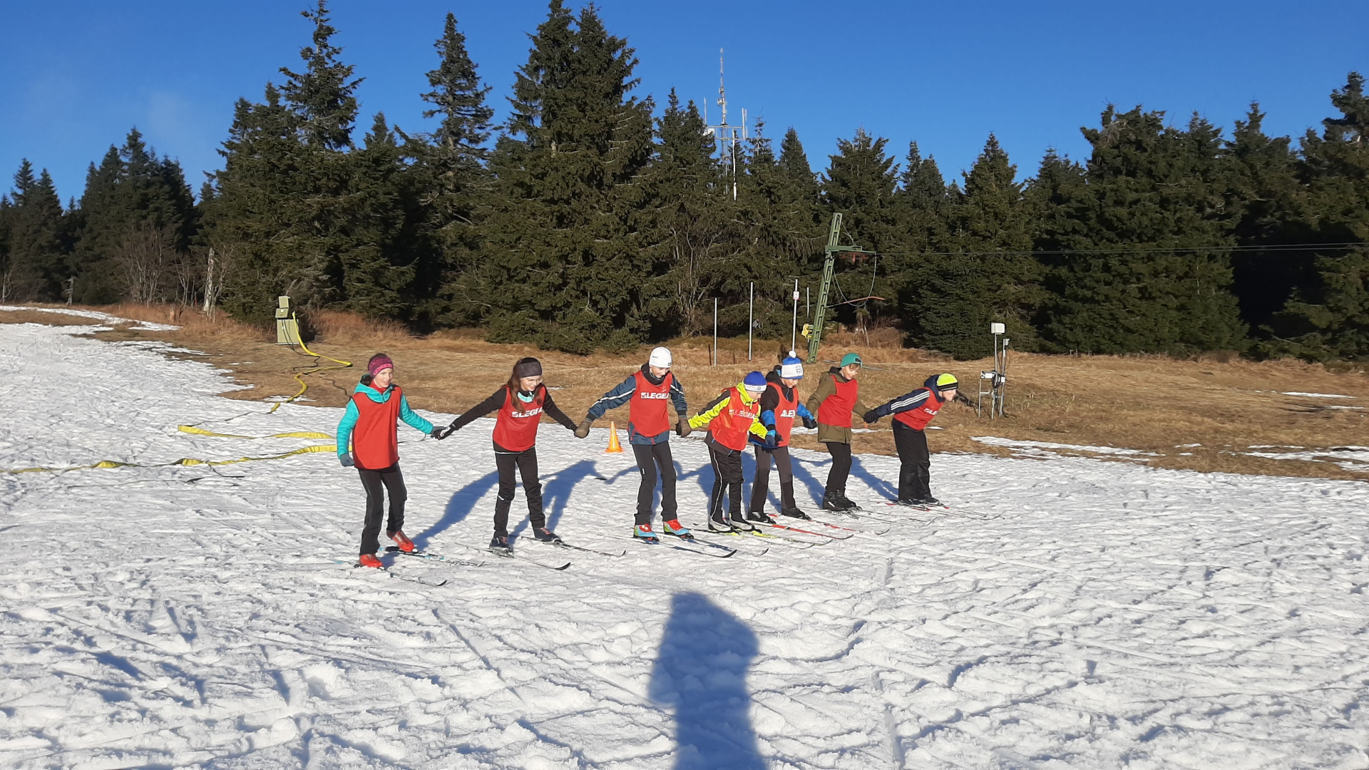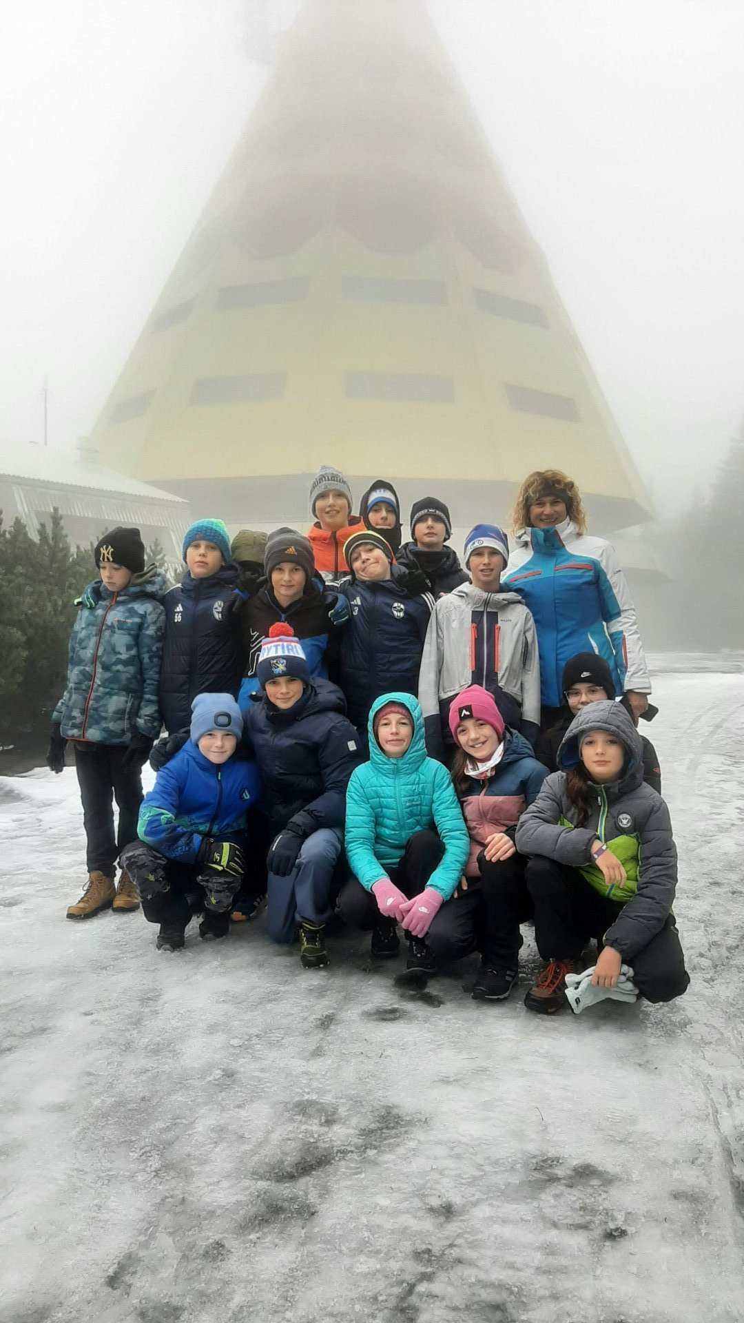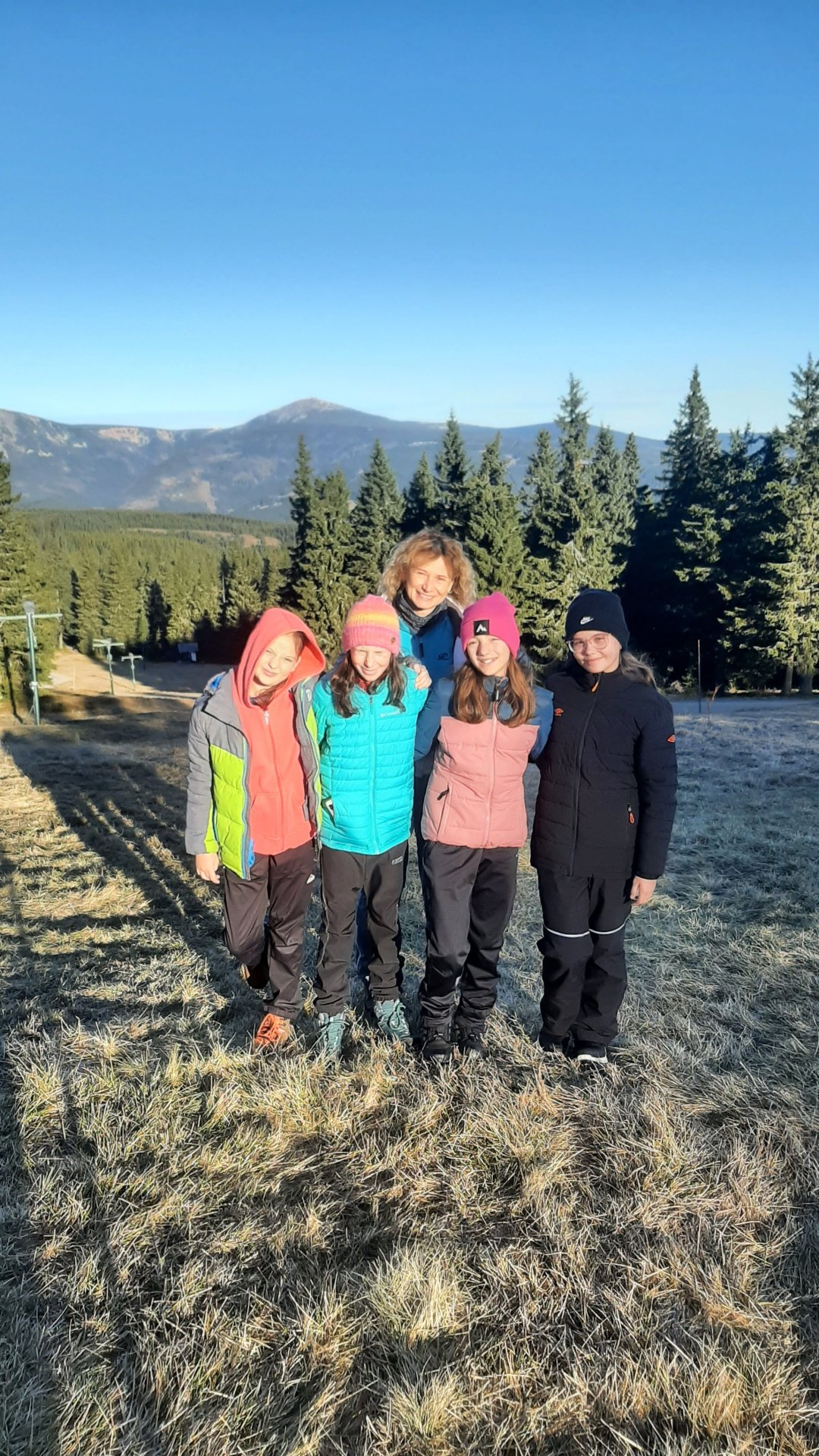 Pod vedením třídní učitelky M. Krejčí a pana trenéra Plecháče děti absolvovaly pestrou sportovní přípravu na zimní sezonu. Vzhledem k častým mlhám, občasnému dešti a ubývajícímu sněhu se činnosti musely neustále přizpůsobovat. Podle přiložených fotek je vidět různorodost našich aktivit. Byli jsme ne delším pěším výletě na rašeliniště na Černé hoře, každý den jsme na běžkách trénovali stabilitu a šikovnost, hráli jsme venku různé hry, ve středu nás čekal orientační běh po hřebenech hor. Na hotelu jsme měli též sportovní vyžití ve formě cvičení v tělocvičně, stolního fotbálku či stolního tenisu. Večery jsme se snažili tmelit kolektiv při různých společenských hrách a k tomu jsme ještě stihli každý den pilně studovat český jazyk a matematiku. Trochu nás mrzí, že část naší třídy sice s námi na Horském hotelu byla, ale sportovní přípravu absolvovala samostatně se svým klubem běžeckého lyžování. Nicméně sportovní týden jsme si užili na maximum, někteří vědí, že je potřeba zapracovat na svém chování tak, aby příští kurz již mohl být bez neustálého napomínání, neb jsme třídou velmi živou. S pozdravem 6.A a třídní učitelka.