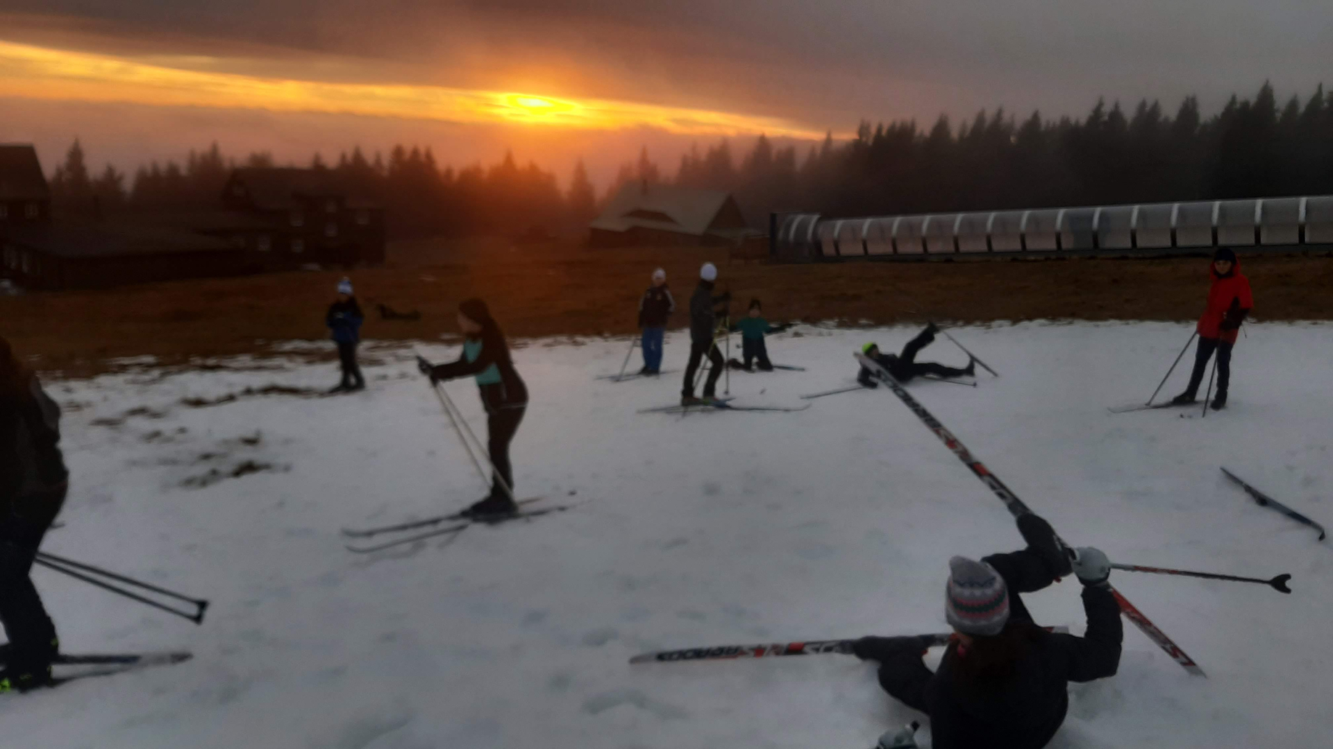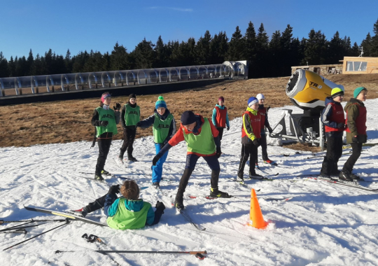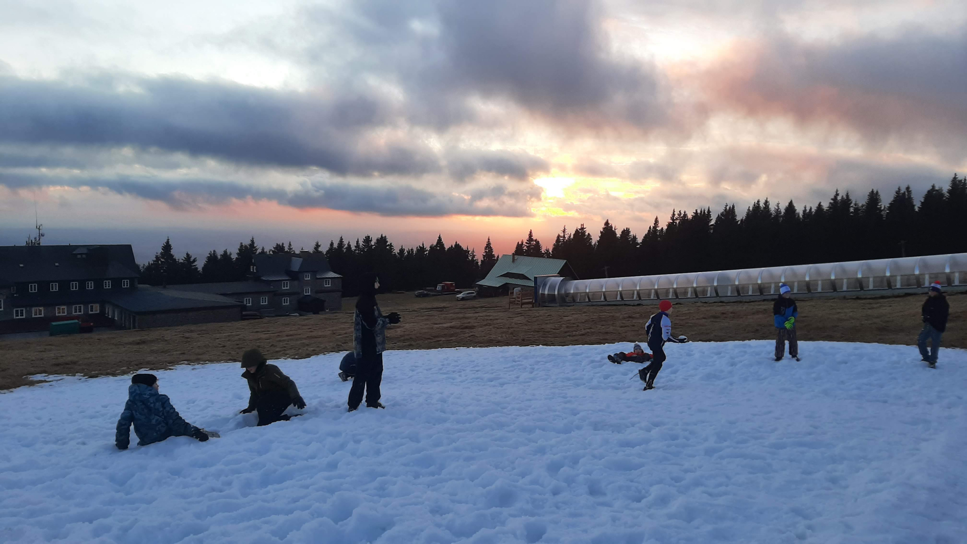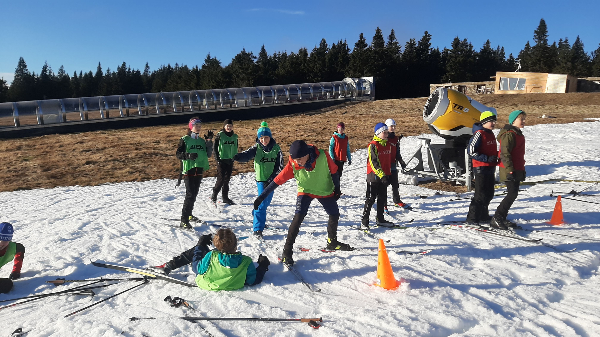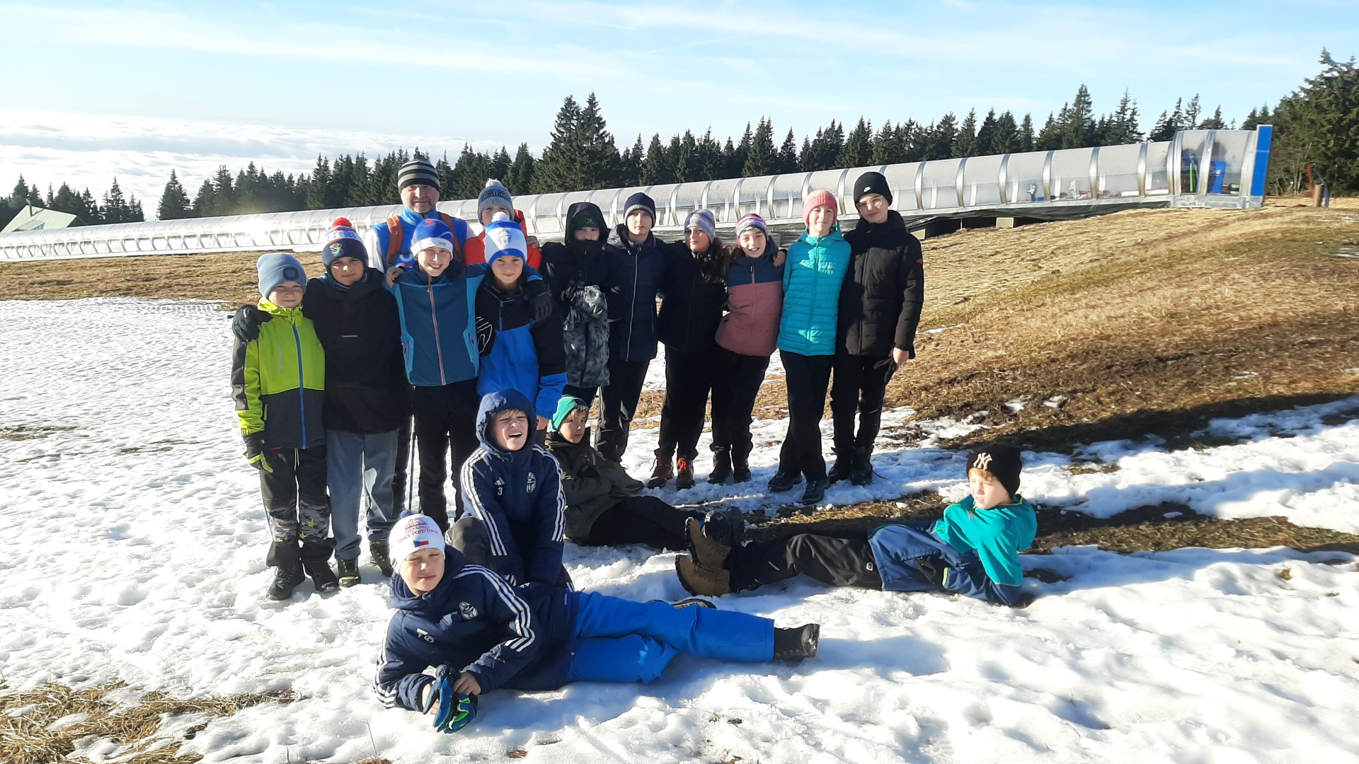 Pod vedením třídní učitelky M. Krejčí a pana trenéra Plecháče děti absolvovaly pestrou sportovní přípravu na zimní sezonu. Vzhledem k častým mlhám, občasnému dešti a ubývajícímu sněhu se činnosti musely neustále přizpůsobovat. Podle přiložených fotek je vidět různorodost našich aktivit. Byli jsme ne delším pěším výletě na rašeliniště na Černé hoře, každý den jsme na běžkách trénovali stabilitu a šikovnost, hráli jsme venku různé hry, ve středu nás čekal orientační běh po hřebenech hor. Na hotelu jsme měli též sportovní vyžití ve formě cvičení v tělocvičně, stolního fotbálku či stolního tenisu. Večery jsme se snažili tmelit kolektiv při různých společenských hrách a k tomu jsme ještě stihli každý den pilně studovat český jazyk a matematiku. Trochu nás mrzí, že část naší třídy sice s námi na Horském hotelu byla, ale sportovní přípravu absolvovala samostatně se svým klubem běžeckého lyžování. Nicméně sportovní týden jsme si užili na maximum, někteří vědí, že je potřeba zapracovat na svém chování tak, aby příští kurz již mohl být bez neustálého napomínání, neb jsme třídou velmi živou. S pozdravem 6.A a třídní učitelka.