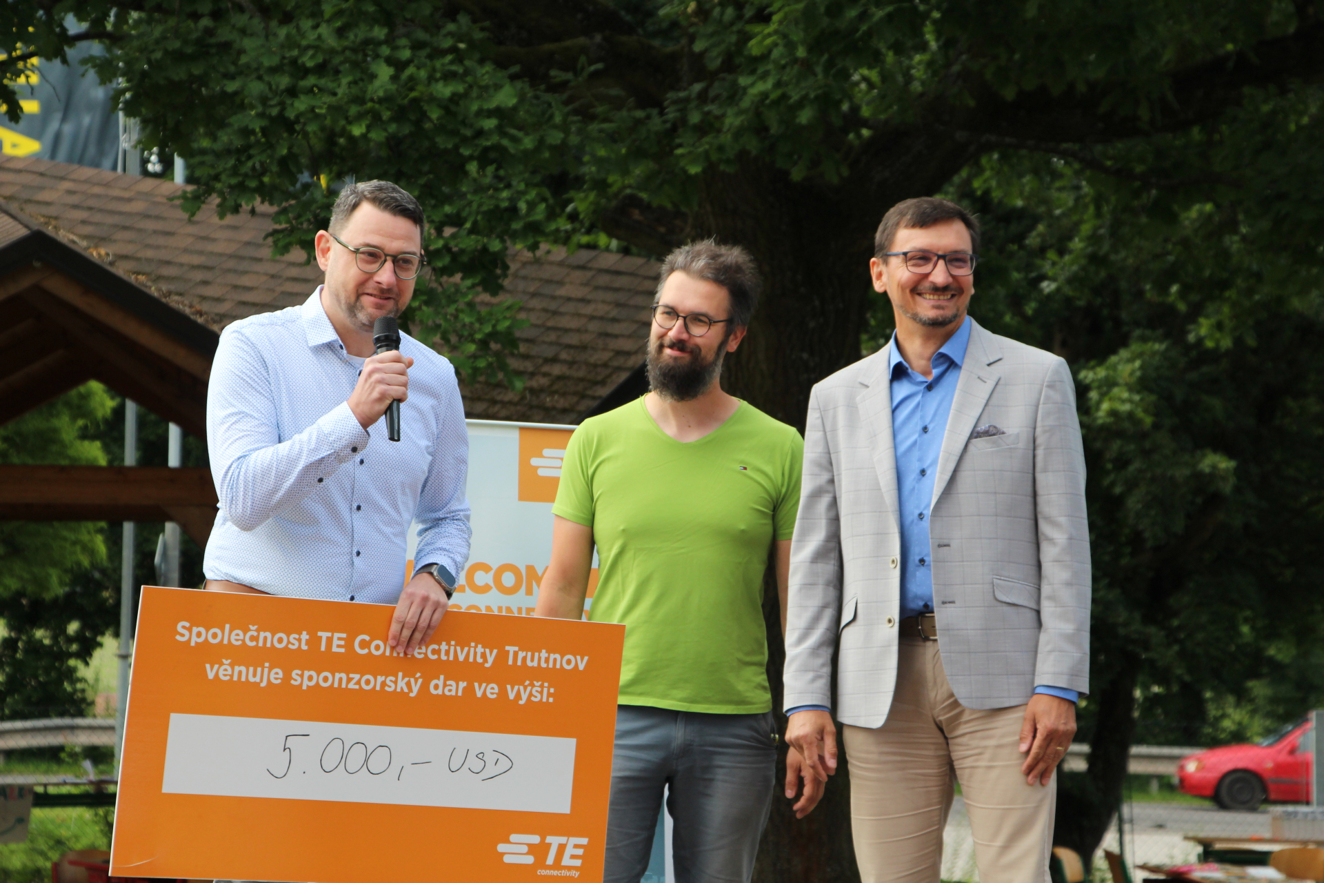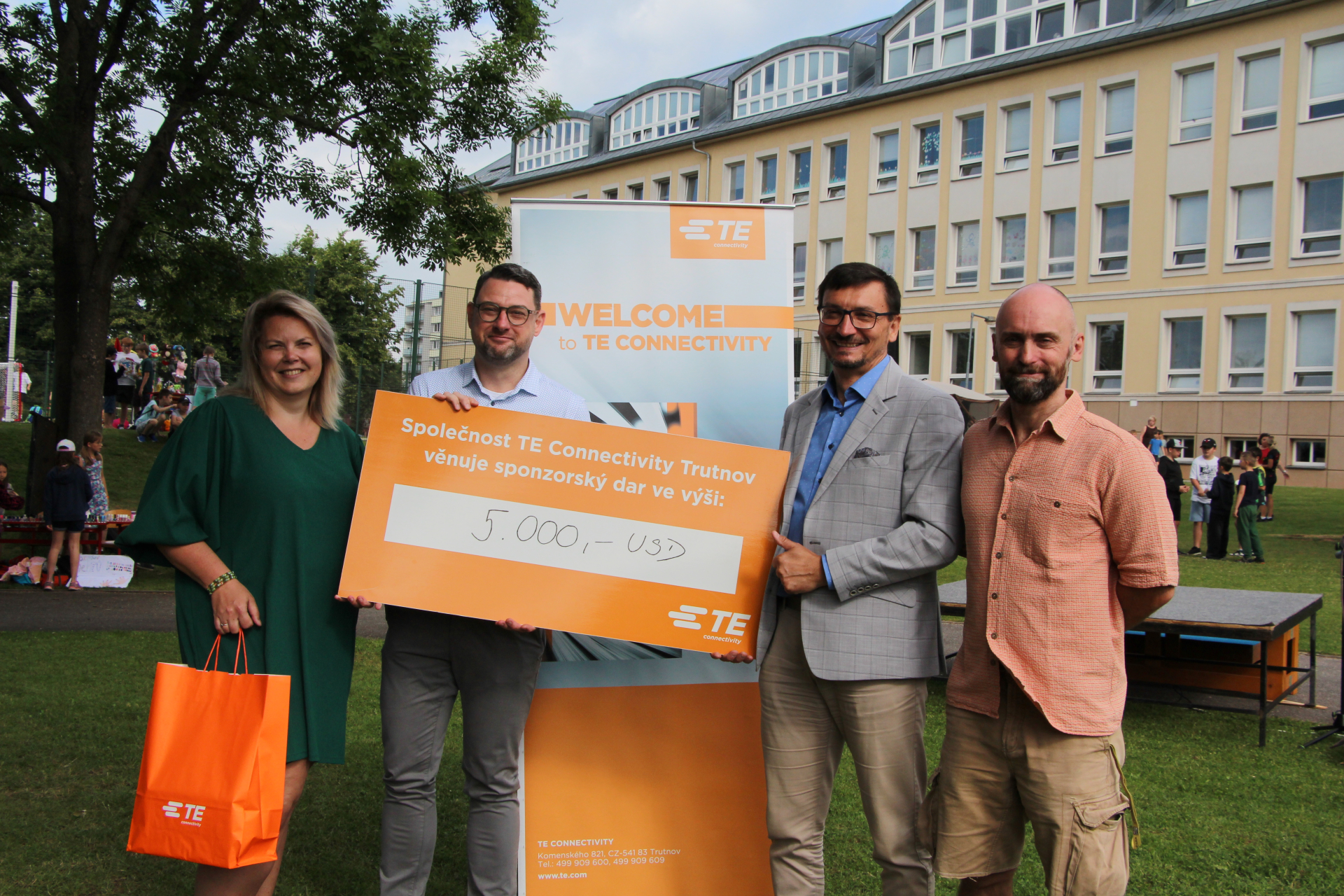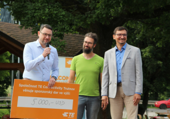 Zástupci firmy TE Connectivity předali vedení školy symbolický šek na 5 000 amerických dolarů. Tento finanční dar byl věnován Spolku Comenius Trutnov, který jej použije na podporu rozvojových aktivit naší školy.