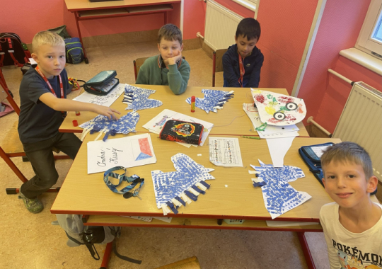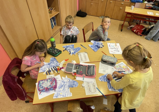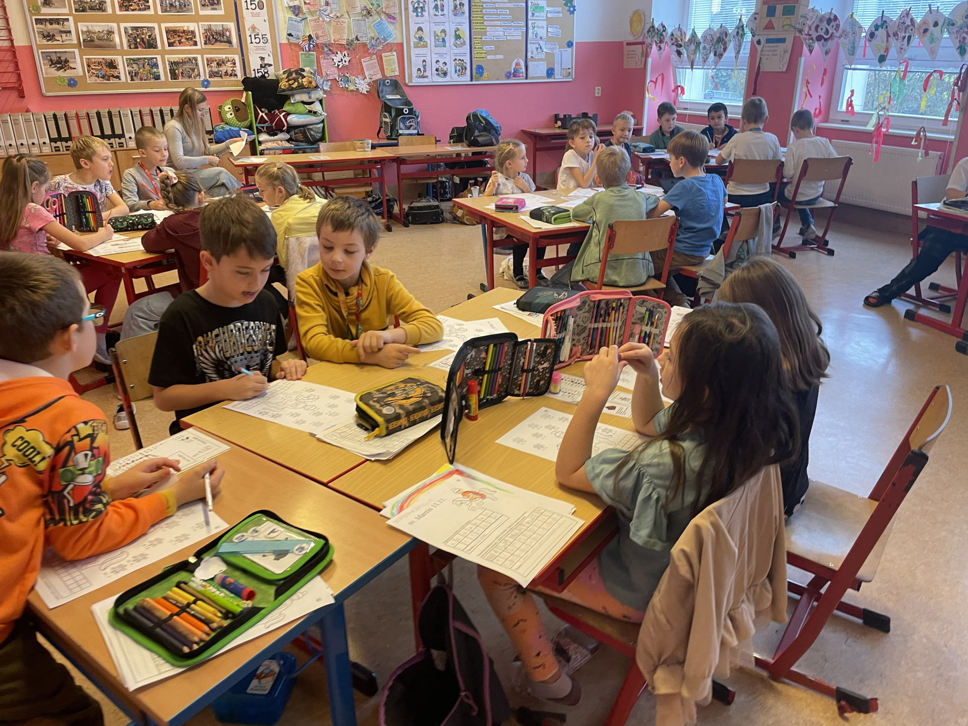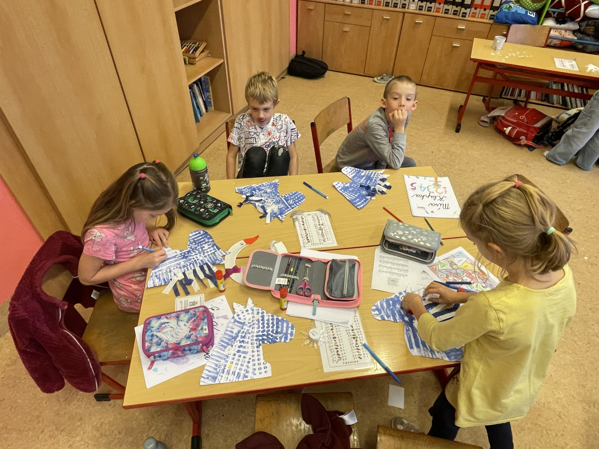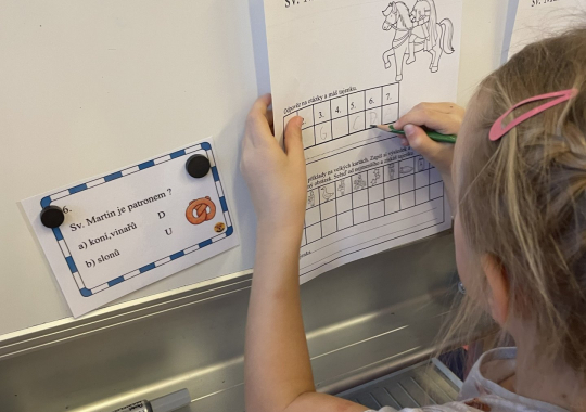Během dopoledne druháci zpívali písničky s martinskou tematikou, řešili zábavné matematické úkoly, kvízy a hádanky, ve kterých si procvičili počítání i logické myšlení. Došlo také na tvoření. Ve 2.A si žáci dokonce upekli svatomartinské rohlíčky.