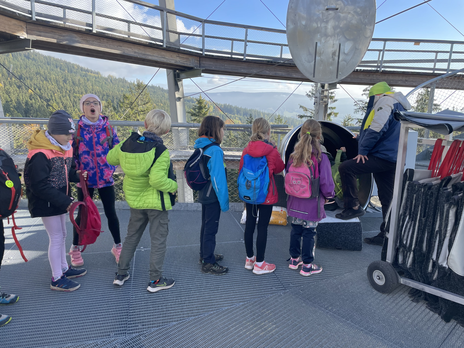 V pondělí 23. října jsme se vydali do Janských Lázní. Počasí nám přálo, Krakonoš rozehnal mraky a tak nám sluníčko krásně zářilo. Cílem výpravy byla Stezka korunami stromů, kde jsme rádi pomohli s akcí „Vyzdob a rozsviť Stezku“. Při hodinách výtvarné výchovy jsme tvořili strašidelné pavouky a duchy z keramické hlíny. Na Stezce jsme pro ně našli vhodná místa. Za odměnu jsme mohli prozkoumat Stezku, sjet dlouhatánský tobogán a užít si Emilův lesní svět. Moc nás to bavilo!