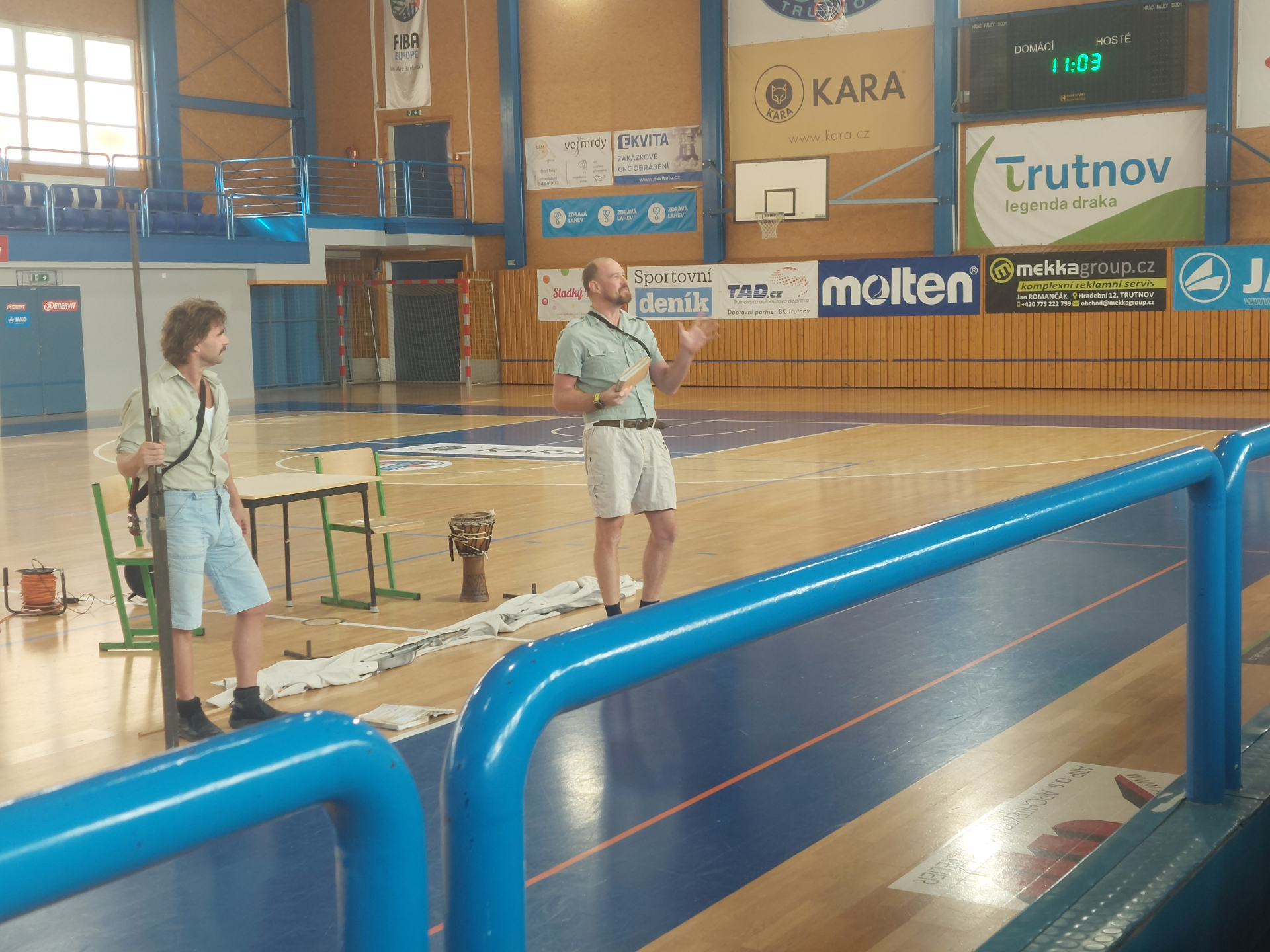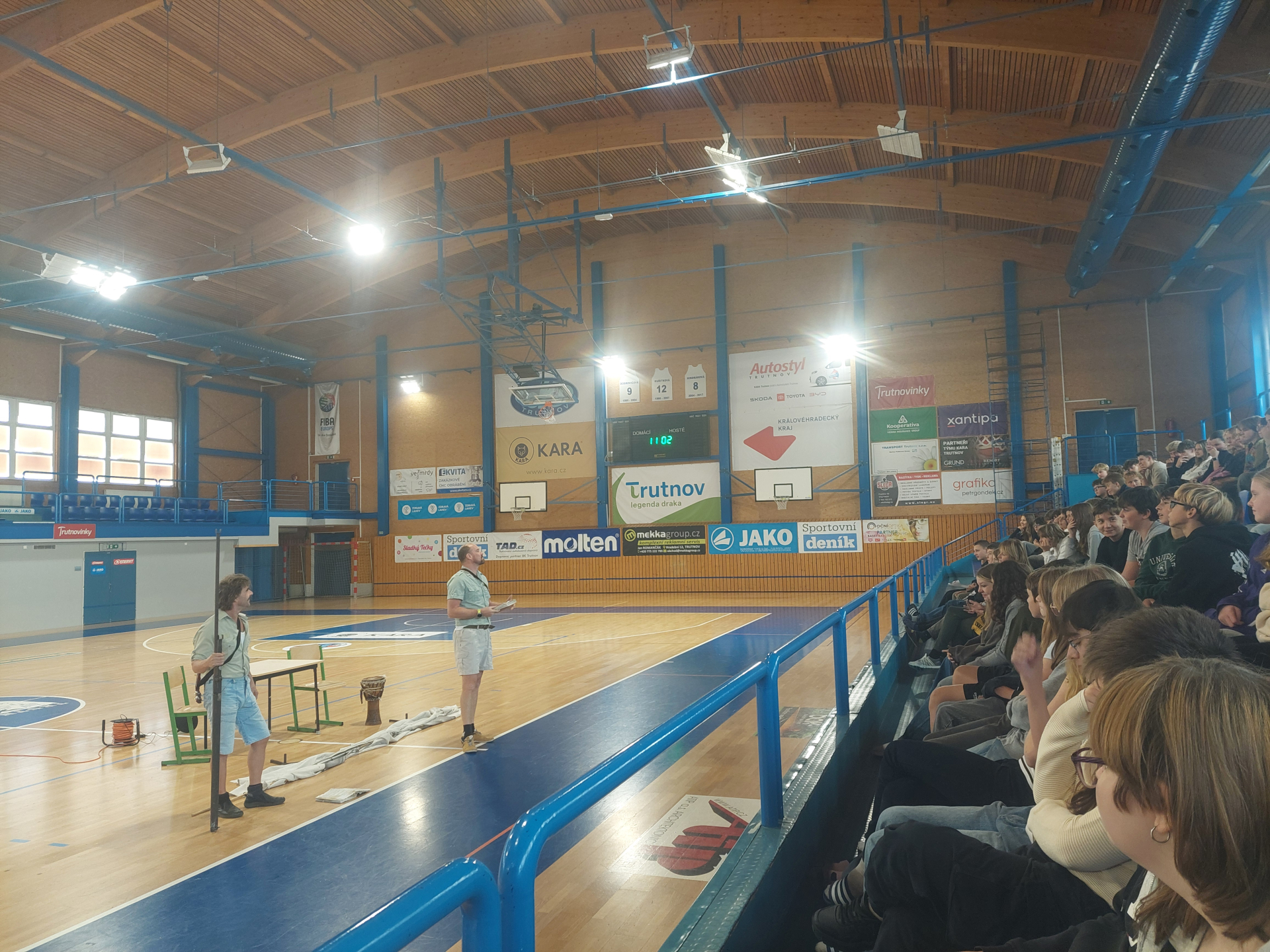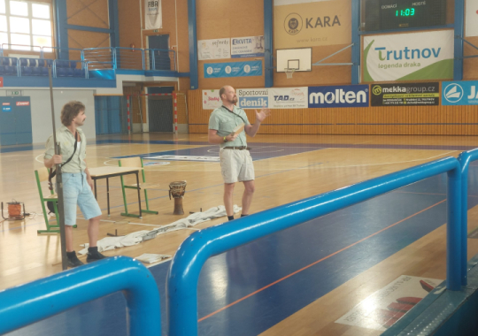 Přesněji řečeno Pavel Oubram a Tomáš Drápela přijeli do naší haly předvést vtipné, a přitom nenásilně poučné vystoupení o legendárních cestovatelích, které ovšem mladá generace už nezná. Představení zhlédlo několik tříd z 2. stupně a žáci z 9. B o něm napsali toto: