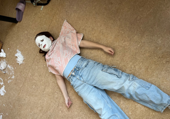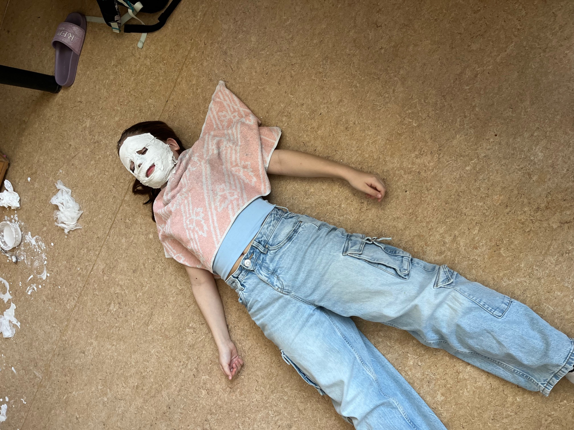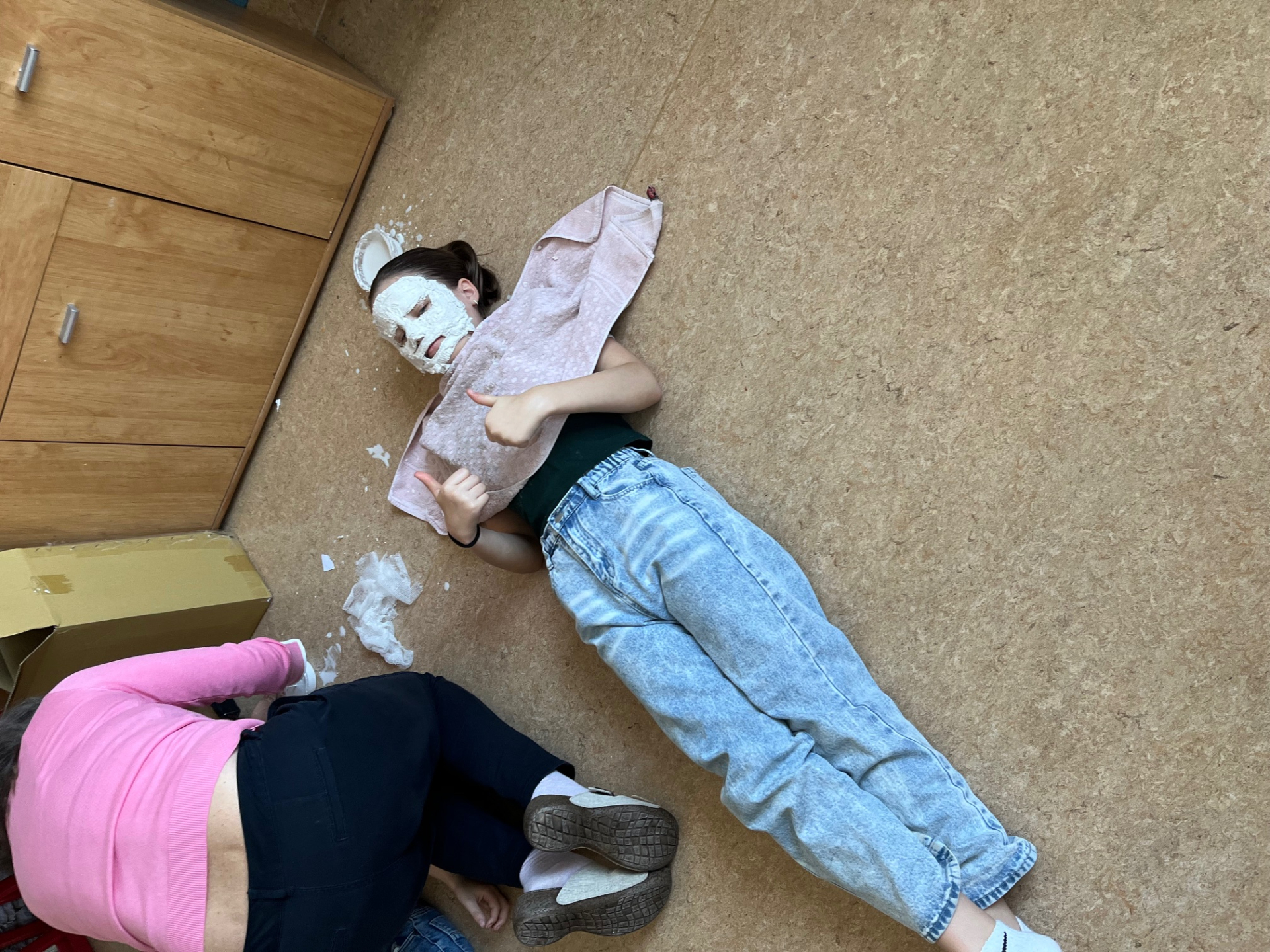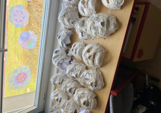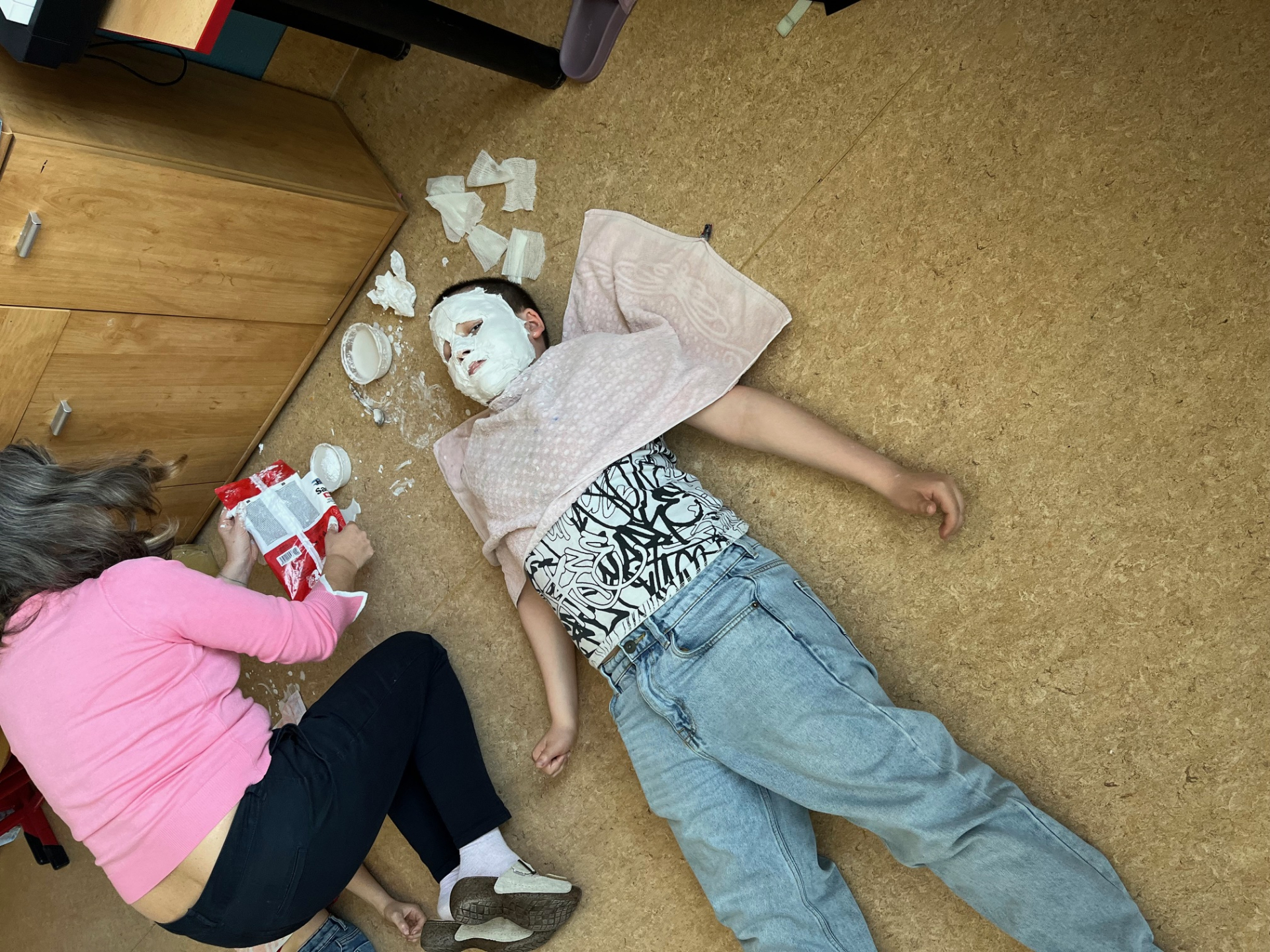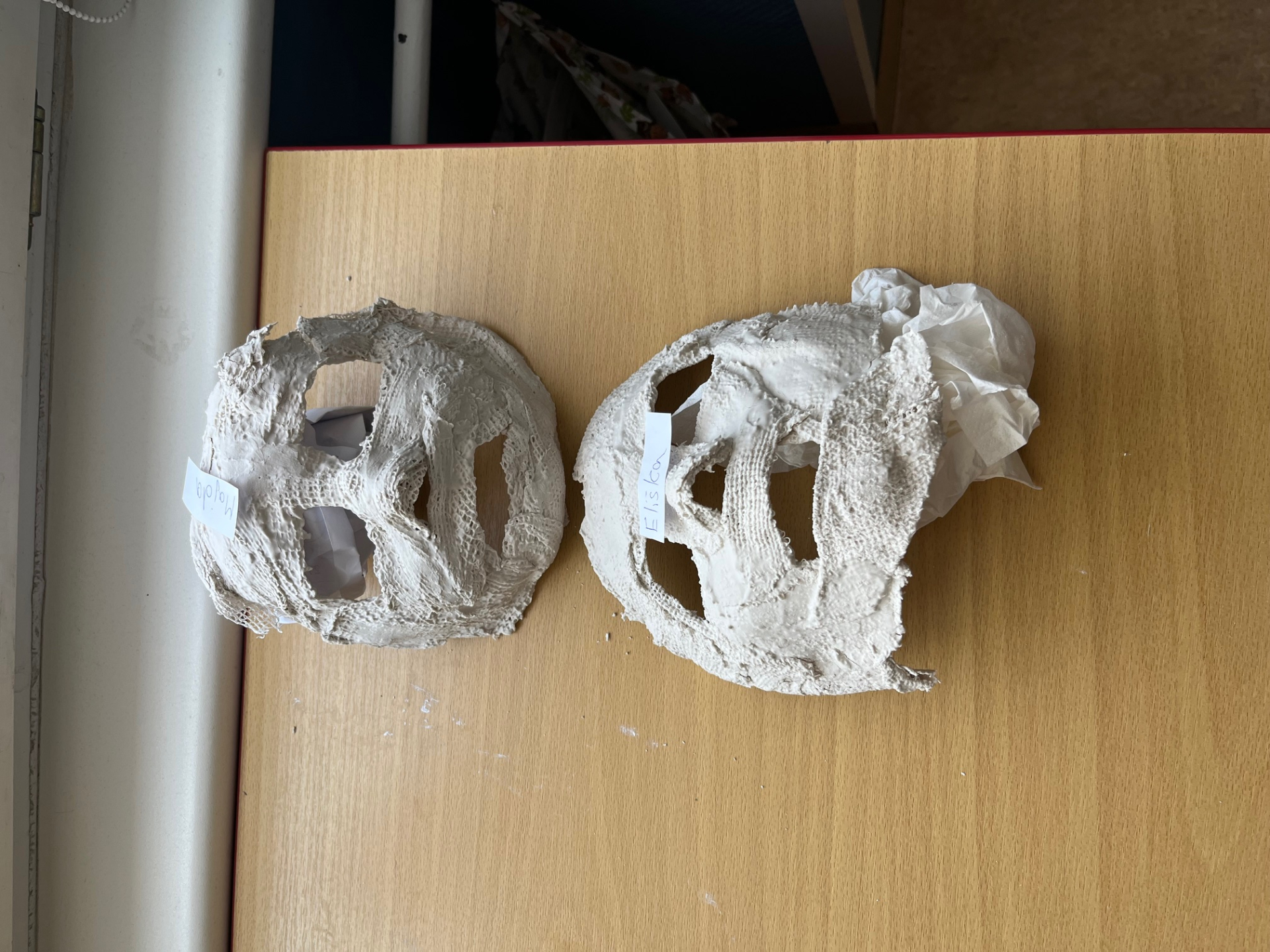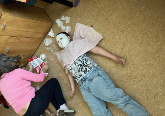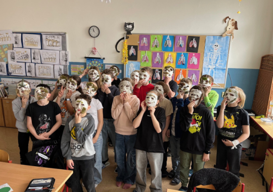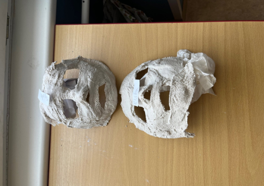 Výroba sádrových masek v hodině přírodovědy