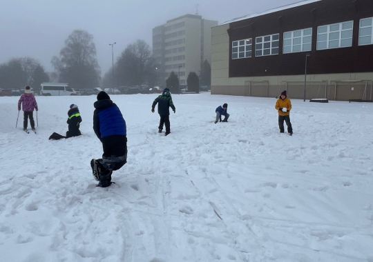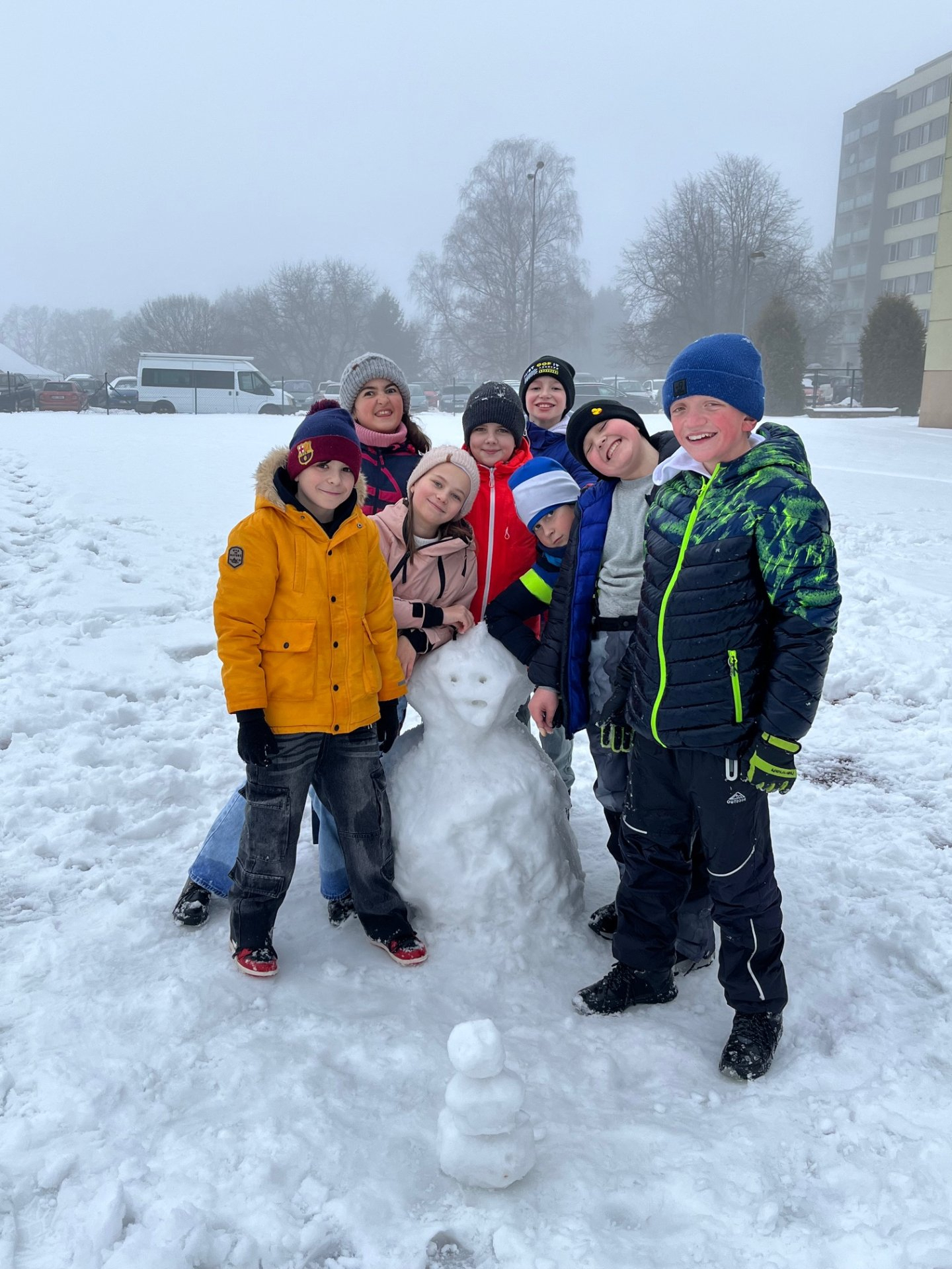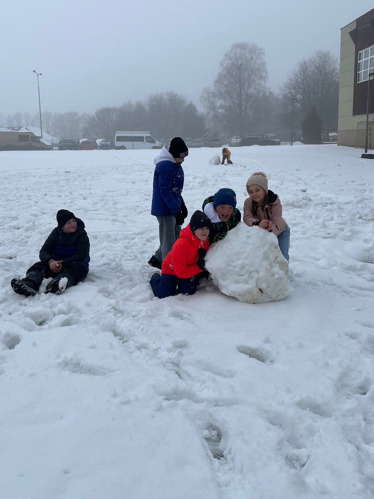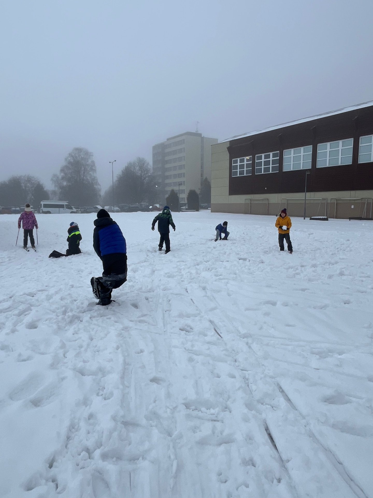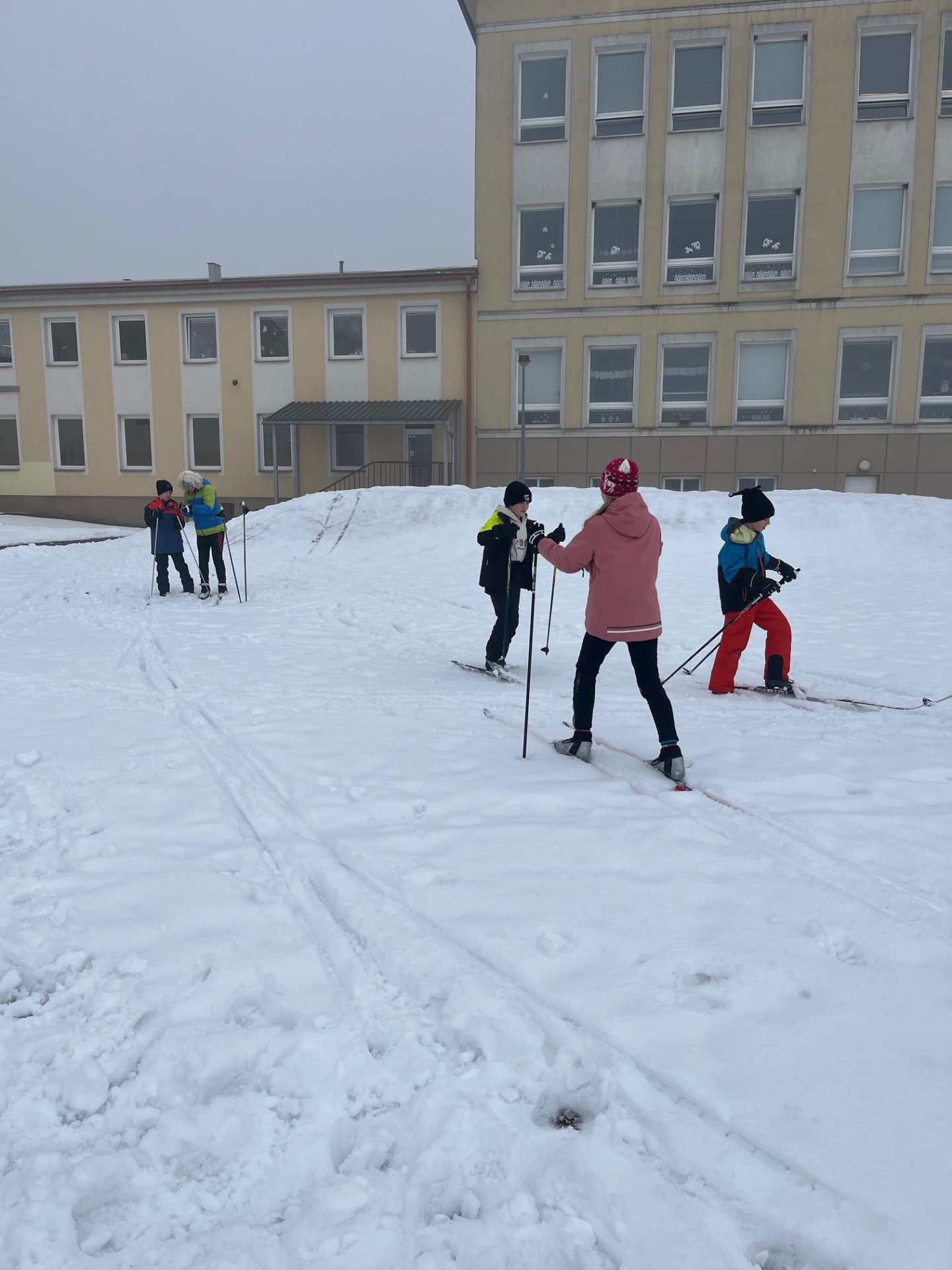 Zatímco skupina zájemců o běžecké lyžování pilovala pod vedením paní učitelky základy techniky a správný odraz, zbytek třídy si užíval zimních radovánek. Na hřišti tak rostli sněhuláci, proběhla pořádná koulovaná a nechybělo ani oblíbené válení ve sněhu.