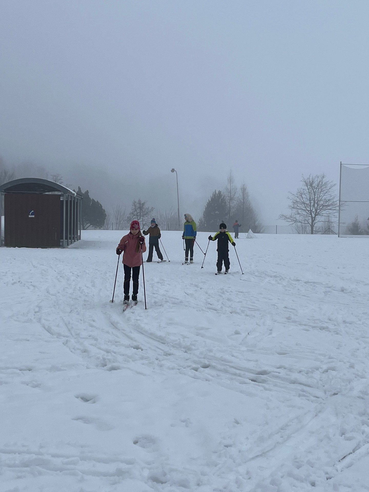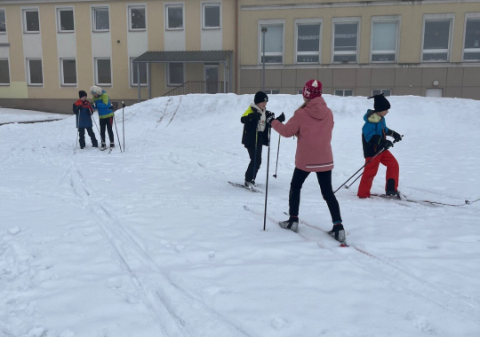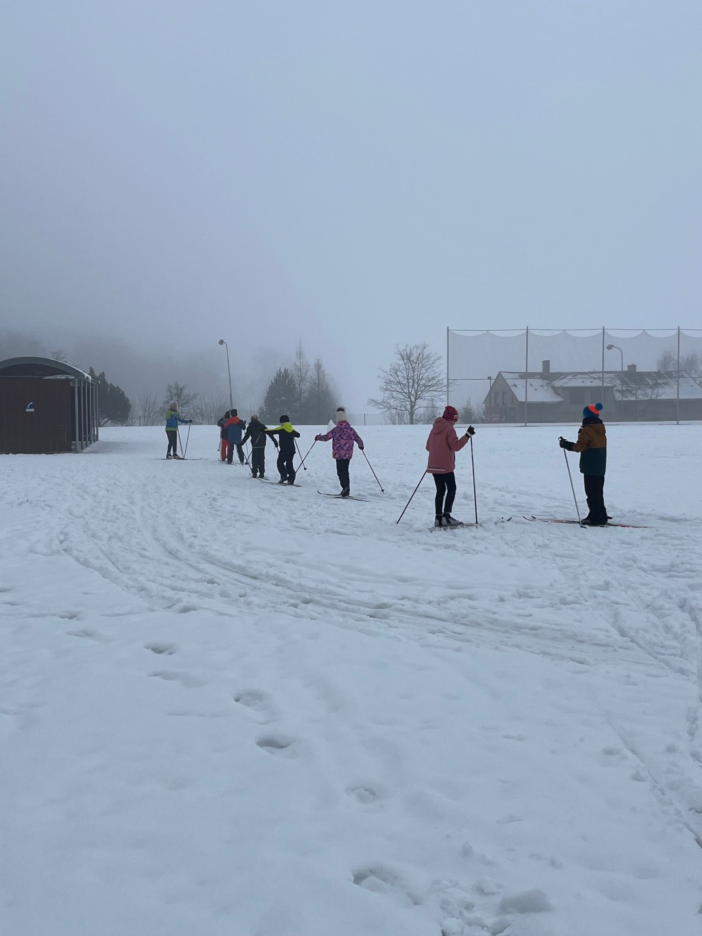 Po velmi zábavném týdnu na lyžařském výcviku se žáci 5.C domluvili s paní učitelkou Juhászovou na netradiční hodinu tělocviku. Tentokrát jsme vyměnili halu za čerstvý sníh a vyrazili na běžky.